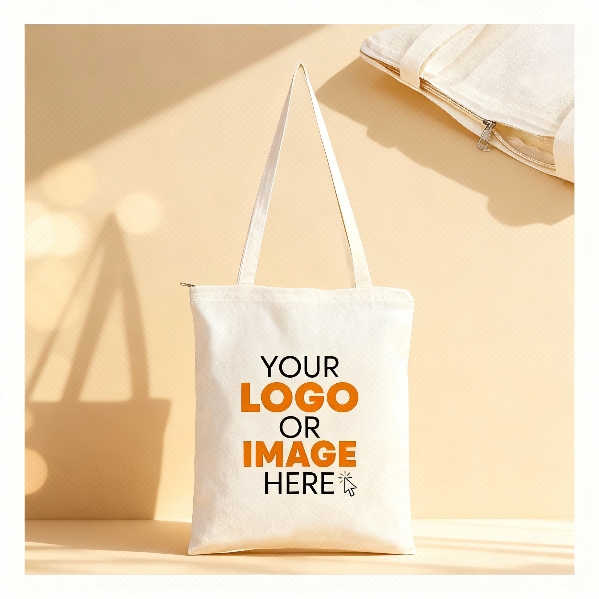 👜 100% Natural Cotton Tote Bag – Eco-Friendly, Durable & Zippered